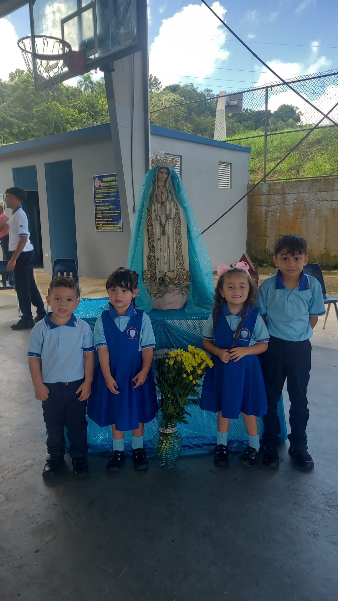 La clase Aura 2023 habilitó y preparó el jardincito de atrás de la Superior. La familia Díaz Pérez donó una imagen de la Virgen Milagrosa para exterior y la Clase preparó el lugar para un jardín. También acondicionó el jardín de Natalia que se encuentra entre los edificios de intermedia y superior. Para los que desconocen sobre esto. Natalia Rosario fue una graduanda de la clase 2009 que falleció en un accidente justo el día antes de comenzar su año de graduación. Su familia preparó el jardín y a través de los años lo hemos ido cuidando.